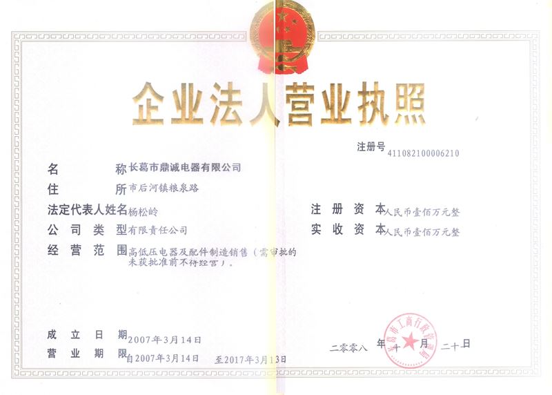 長葛市鼎誠電器有限公司-營業(yè)執(zhí)照